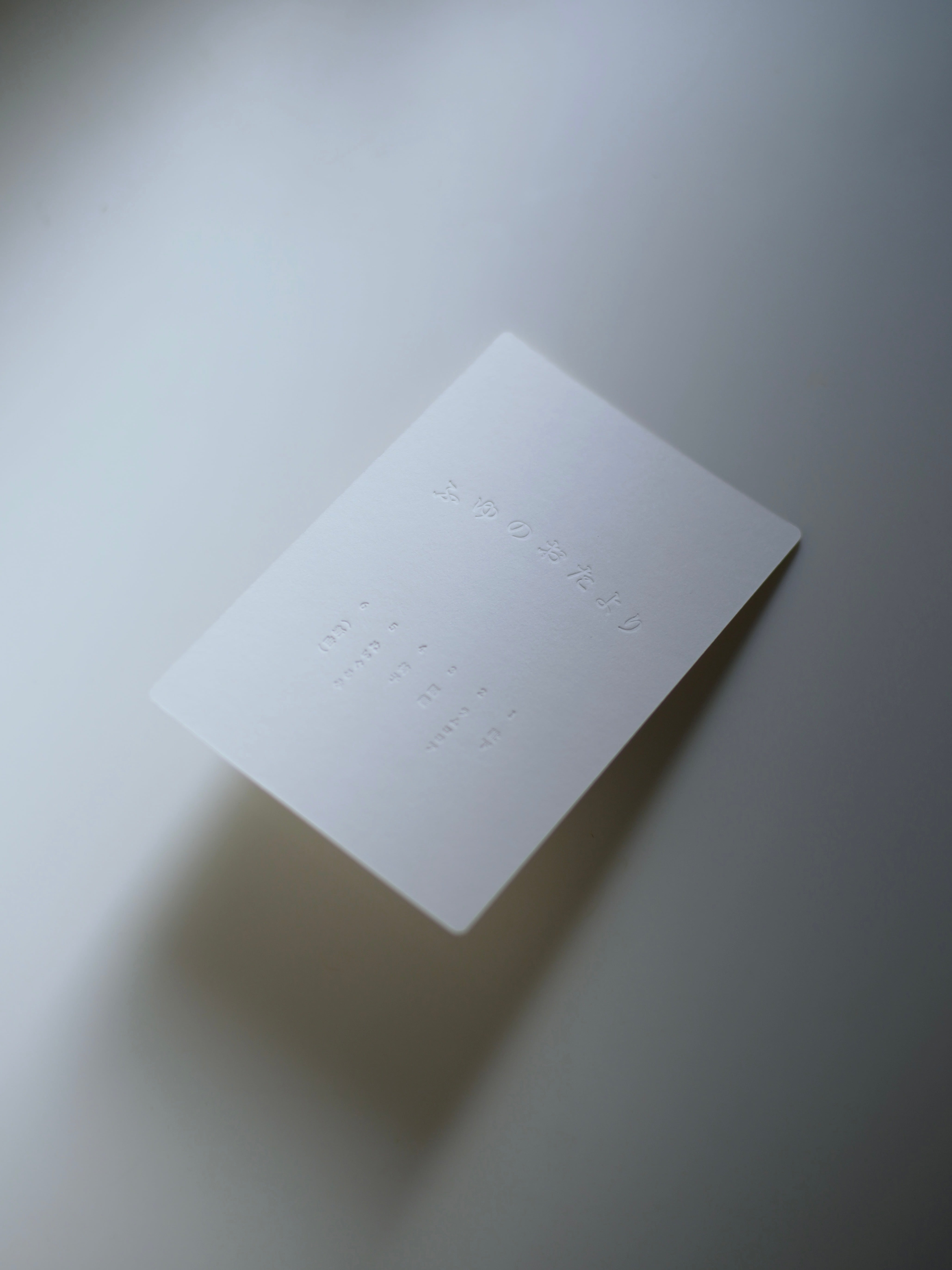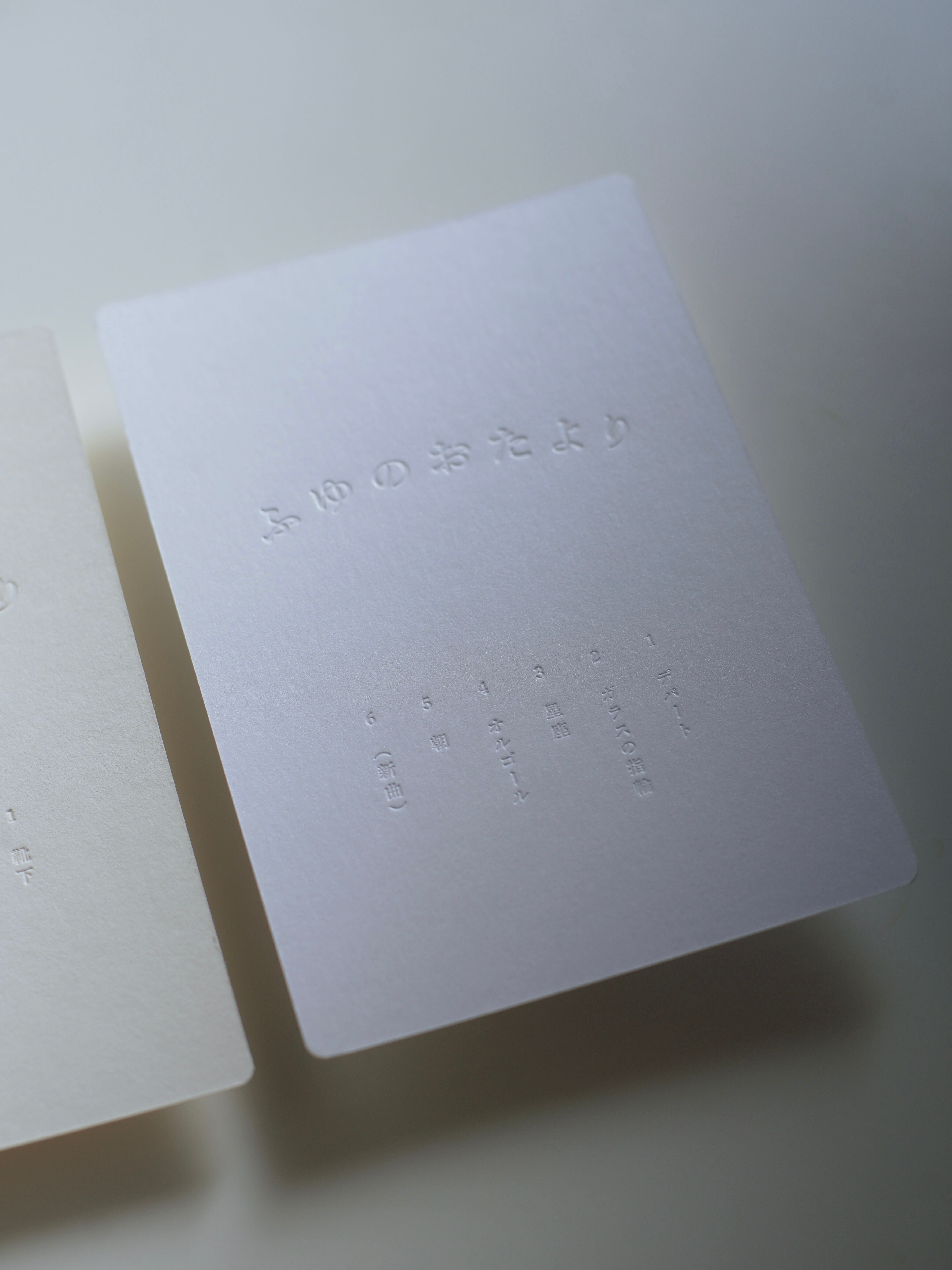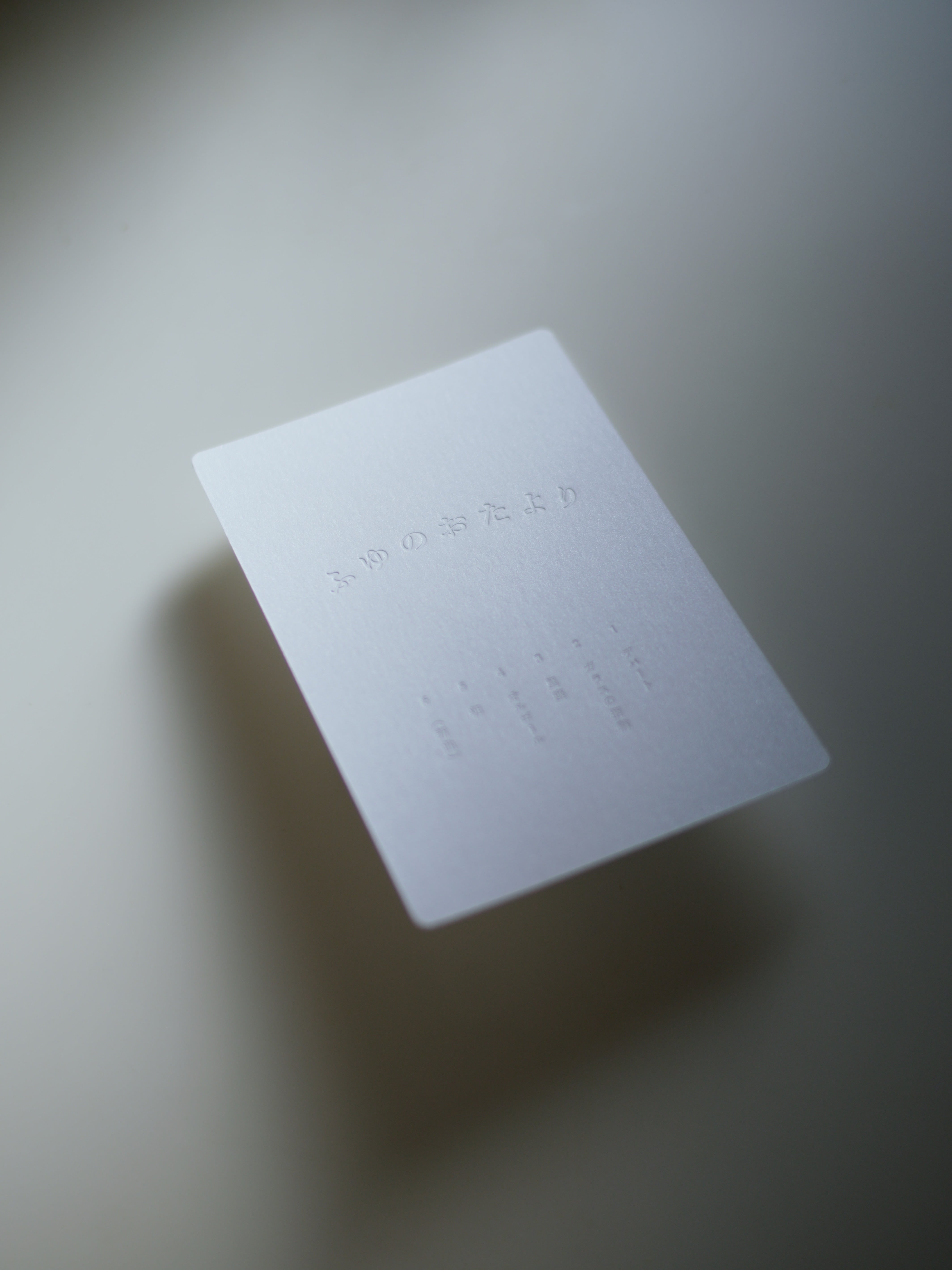 ・雪の上に足跡がついたような文字 箔押し加工で空押しをしました